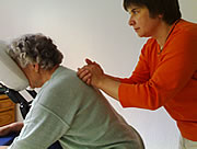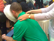 Am Massagestuhl: Shiatsu im Sitzen ist ideal für Senioren und für Berufsgestresste direkt am Arbeitsplatz. Dehnungen, Rotationen, leichtes Klopfen und Druck auf energetisch bedeutsame Körperstellen lassen den Körper in 25 min. entspannen und regenerieren.